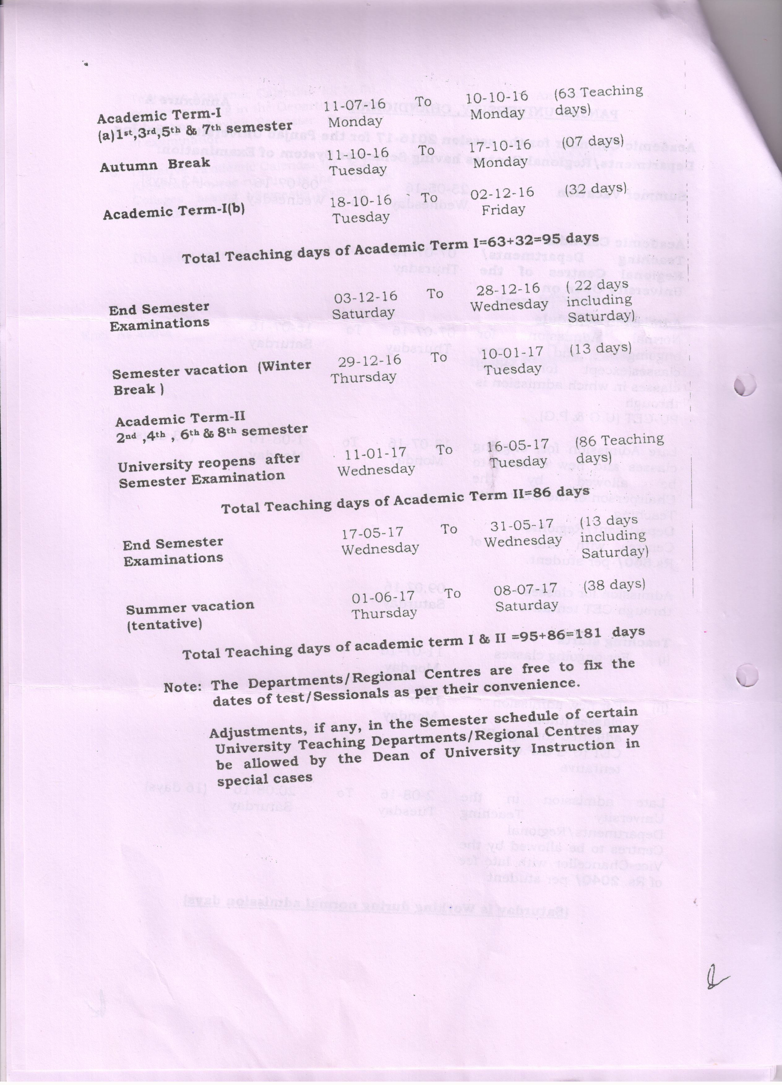 Academic Calender
